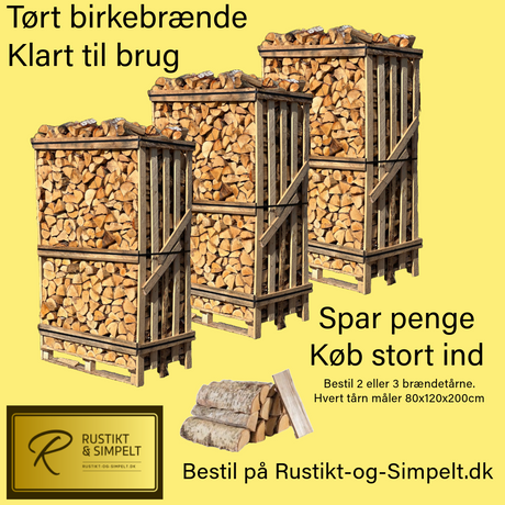 Brændetårne klart til brug med Bøg, Birk eller ASK/EG. Leveres med vores faste bil på Sjælland og Danske Fragtmænd i resten af Danmark