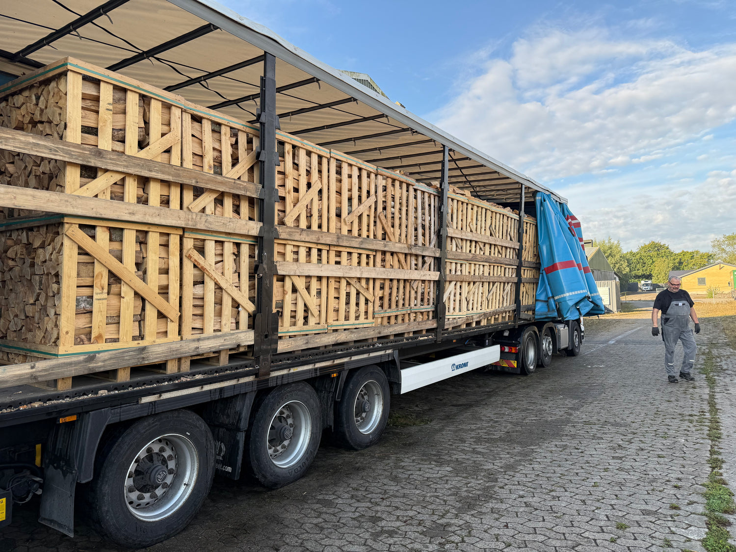 (Brændet kan evt. også leveres i løs vægt og tippes af på et kørefast underlag på Sjælland.)