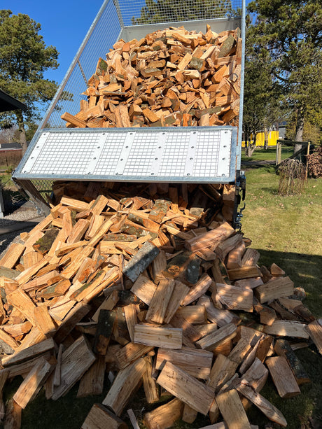 Vores brænde leveres i løs vægt, og dette brænde er friskt/lufttørret. Det betyder at det skal tørre i din brændestak 6 måneder.